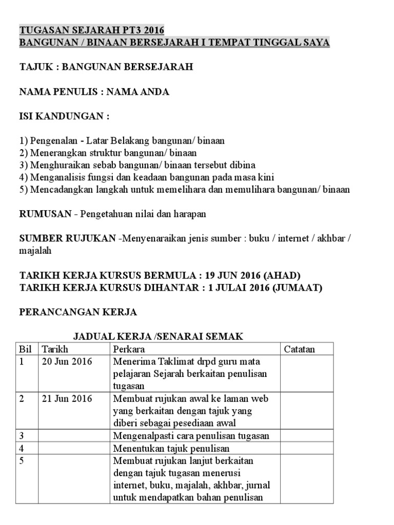 Tajuk Tugasan Kerja Kursus Sejarah Pt3 Tahun 2016 Bumi Gemilang